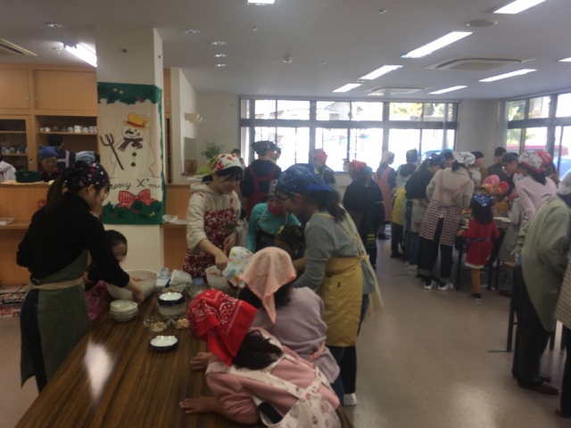 2019年12月15日(日) 活動日記 防災訓練&みんな食堂 その後、学区内にある積善会へ。地域の子どもや親や人生の大先輩方と、ノートルダム清心女子大学の学生の献立をみんなで一緒に作り、美味しく頂きました。やはり、多くの人数で食べることは楽しいです!