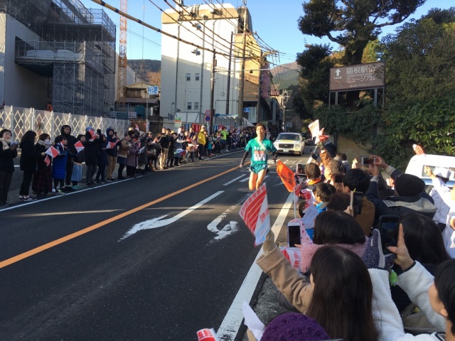 朝より箱根宮ノ下交差点へ。箱根駅伝スタートから約33分後、最初のランナー青山学院大学の選手が通過。下り坂ながら直角に曲がる道ですが、スピードの速さには驚かされます。あのスピードで下ると怖くないのだろうか・・・。