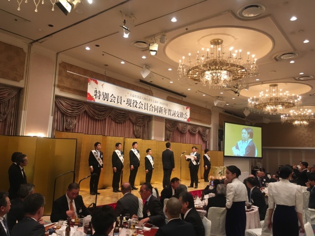 夜は賀詞交歓会へ。岡山青年会議所の新理事長が誕生し、新しい新会員が入り、これからの街づくりを期待します。