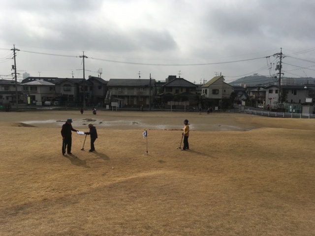 その後、グランドゴルフへ。昨日の雨のため、コースを上手に使いながらプレーをされていました。