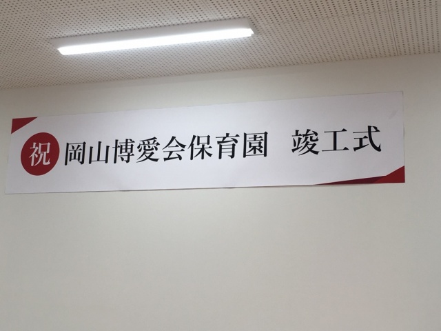 朝より岡山博愛会保育園の竣工式へ。病院や高齢者施設で岡山市を支援して頂いている岡山博愛会ですが、老朽化した保育施設を見せて頂いたのは約3年前。当時は建て替え・増築に補助金をほとんど出していなかった岡山市ですが、待機児童対策で方針を変更し対象となった第一号グループです。(少しですが、協力させて頂きました)挨拶でもこの点を述べさせて頂きましたが、これからも社会福祉法人として更なる飛躍を期待します。