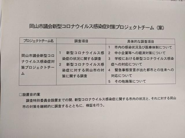 その後、市役所へ。コロナウイルスプロジェクトチームが設立され、17人の議員が集まり、岡山市民のためにどのような提案を岡山市に対し実行していくか検討。来週2回開催し、今月末までには提言をする予定です。