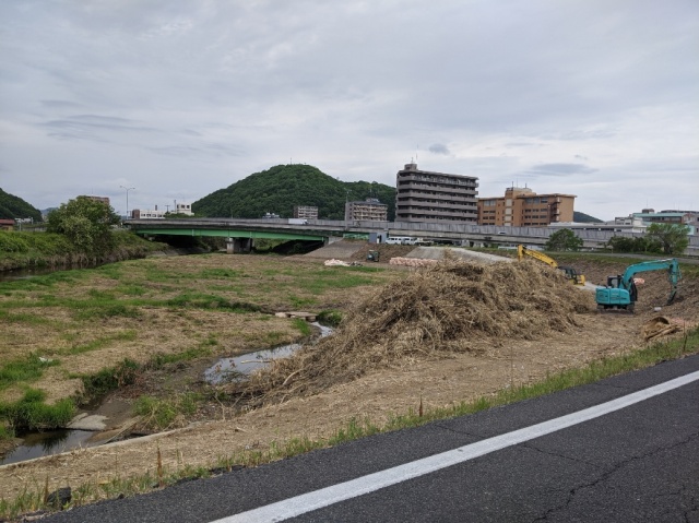 途中、工事現場へ。笹ヶ瀬川の浚渫工事が進んでいます。平成30年7月集中豪雨後に県民局へ要望し、決して早くはありませんが、自然災害対策は進んでいます。