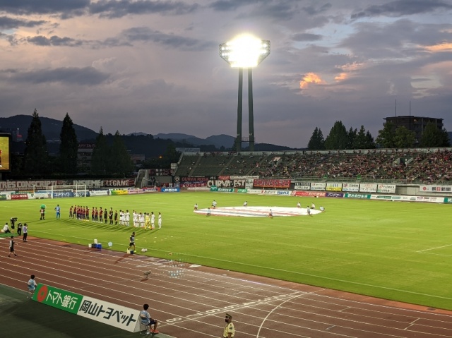 夜はファジアーノ岡山の応援へ。久しぶりにスタジアムに行きましたが、チケット購入・入場はもちろん、シートも3席空いて座り、完璧なコロナウィルス感染対策です。試合は残念ですが敗れ、2000人強のサポーターは下を向き・・・。