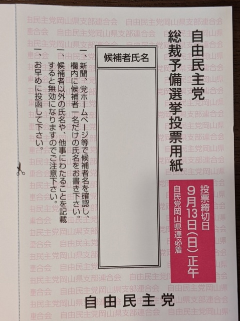 2020年09月11日(金) 活動日記 投票 朝より市役所へ。個人質問2日目。代表質問と違い、地元密着の質問が増えました。皆さん、市民の代表を感じます。その後、原稿提出。いろいろネッた質問が出来ました。来週から打ち合わせが始まります。自由民主党総裁選のハガキです。いろいろ考えます!