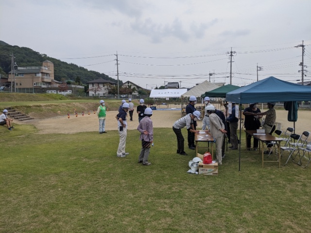 その後、避難訓練へ。8時30分に災害が発生したことを想定し、連絡網の訓練や体温検査を含めた受付。本番さながらです。関係者の皆さん、お疲れ様でした。
