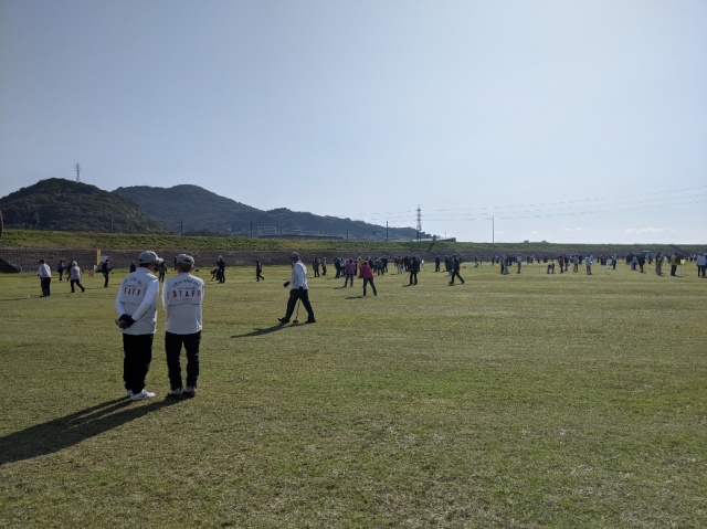 朝よりグランドゴルフ大会へ。秋晴れの中、約500人の方がコロナ対策をしながら、プレーを楽しんでおられました。