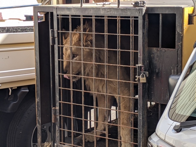 途中、ライオンの檻まで運ぶのに、道が狭いことが判明。リース会社に車を借りるなどアクシデントが・・・。