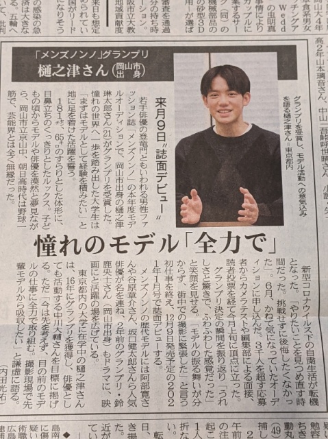 2020年11月30日(月) 活動日記 モデルに!&講演 朝よりビックリ!朝刊にソフトボールの教え子が。「プロ野球挑戦」かと思い気や、モデルと!!モデルに、学業に頑張って欲しいです。その後、小学校へ。毎年恒例の6年生への授業で、今年は『行政のソフト・ハード災害対策』をテーマに講演。いくつか話をしましたが、ひとつでも伝わっていることを願います。その後、市役所へ。個人質問内容について担当と打ち合わせ。毎回ですが、勉強になります。少し修正し、予定時間までに原稿提出終了。