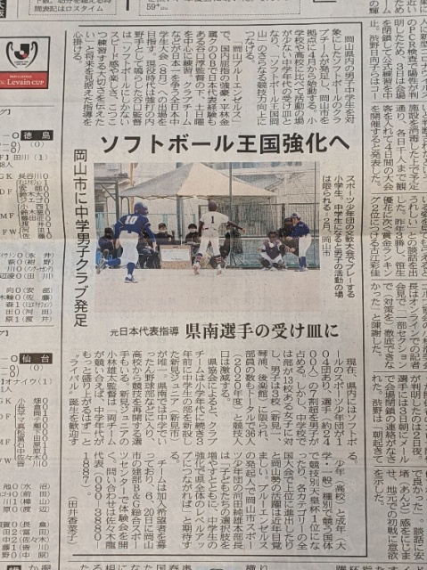 今朝の朝刊にブルーエンゼルスの記事が。中学校男子ソフトボールチームを4月から立ち上げますが、私は顧問を受けています。小学校でソフトをしている子ども達の受け皿になることを祈ります。
