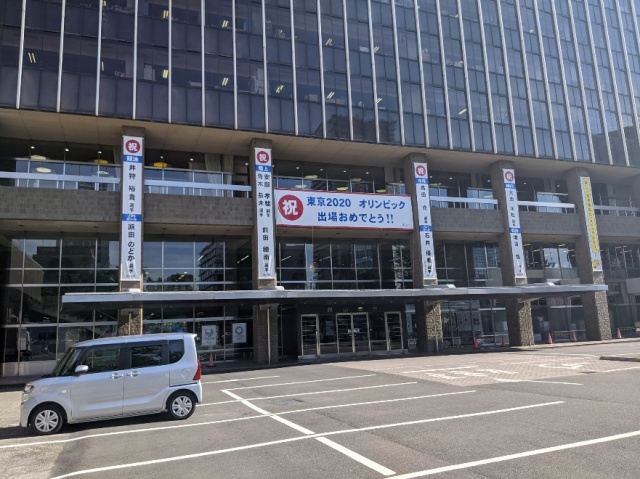 今日から東京オリンピック!女子ソフトボール、女子サッカーが始まり、素晴らしいスタートが。岡山市役所には女子ソフトボール選手『原田のどか』さんなど岡山ゆかりの選手を応援しています!