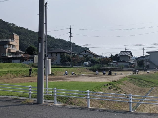 2021年09月23日(木) 活動日記 草刈り&復活した池 朝より感謝です。市施設のスポーツ広場を指定管理を受けて頂いている皆さんが草刈りをして頂いていました。緊急事態宣言やまん延防止宣言期間は市施設の使用を禁止していますので、草が生えます・・・。感謝感謝!