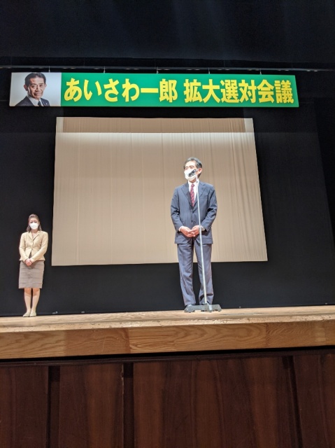 2021年10月18日(月) 活動日記 お礼&拡大選対会議 その後、訪問。選挙カーを停めさせて頂く件について、関係者と打ち合わせ。その後、拡大選対会議へ。明日から始まる衆議院議員選挙で、あいさわ一郎立候補予定者を応援することをみんなで確認。岡山1区・2区とも、決戦です!