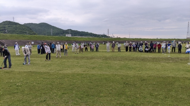 2022年05月14日(土) 活動日記 グラウンドゴルフ大会&SDGs交流会 朝よりグラウンドゴルフ大会へ。約600人の参加者で盛大に開催されました。また、始球式(ホールインワン競争)に参加させて頂きましたが、残念な結果に・・・。その後、来賓議員で懇談。冗談話も交えながら、楽しいひと時でした。