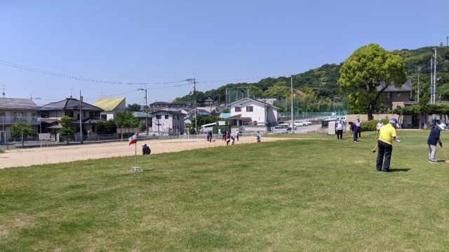 朝よりグラウンドゴルフ大会へ。地域の皆さんと一緒に楽しみました。ただ、暑かった!