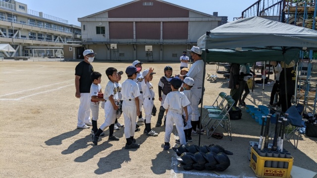 2022年05月22日(日) 活動日記 練習試合 朝より練習試合へ。Bチームにとっては初めての試合です。子ども達はガチガチに緊張していましたが、声も出ておりナイスゲーム!多くの感動がありました!!伊島スポーツ少年団の皆さんには感謝申し上げます。全国大会予選で顧問をしている岡山少年ソフトボールクラブと岡山リトルエンゼルスが優勝した、と!おめでとうございます!!全国制覇を願います!!!