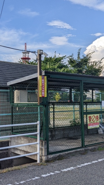 その後、現場へ。地域の皆さんの協力より、不審者対策の防犯カメラを設置。ゴミの不法投棄もなくなったらしいです。