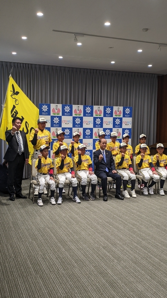 その後、表敬訪問へ同席。全国大会出場する岡山少年ソフトボールクラブが大森市長を表敬訪問。初の全国制覇を期待します。