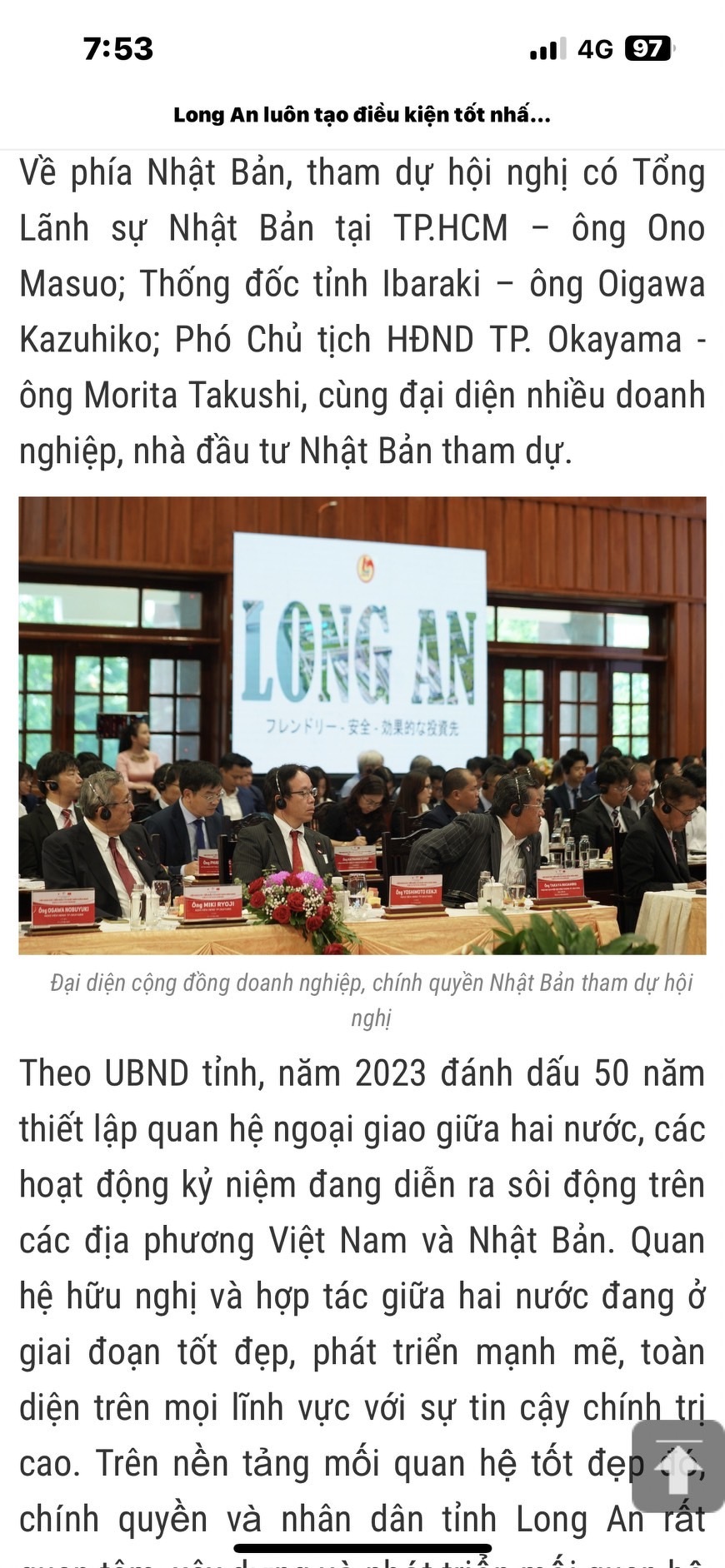 2023年07月30日(日) 活動日記 日越外交関係樹立50周年 2泊4日(弾丸ツアー)で、ベトナムで開催された『日越外交関係樹立50周年イベント』に経済界の皆さんと参加 岡山市はロンアン省との友好都市を、経済界からの要望より検討しています 今後経済界・ロンアン省・議会が友好な関係を築くことが、友好都市への第一歩です (写真はロンアン省の新聞より)