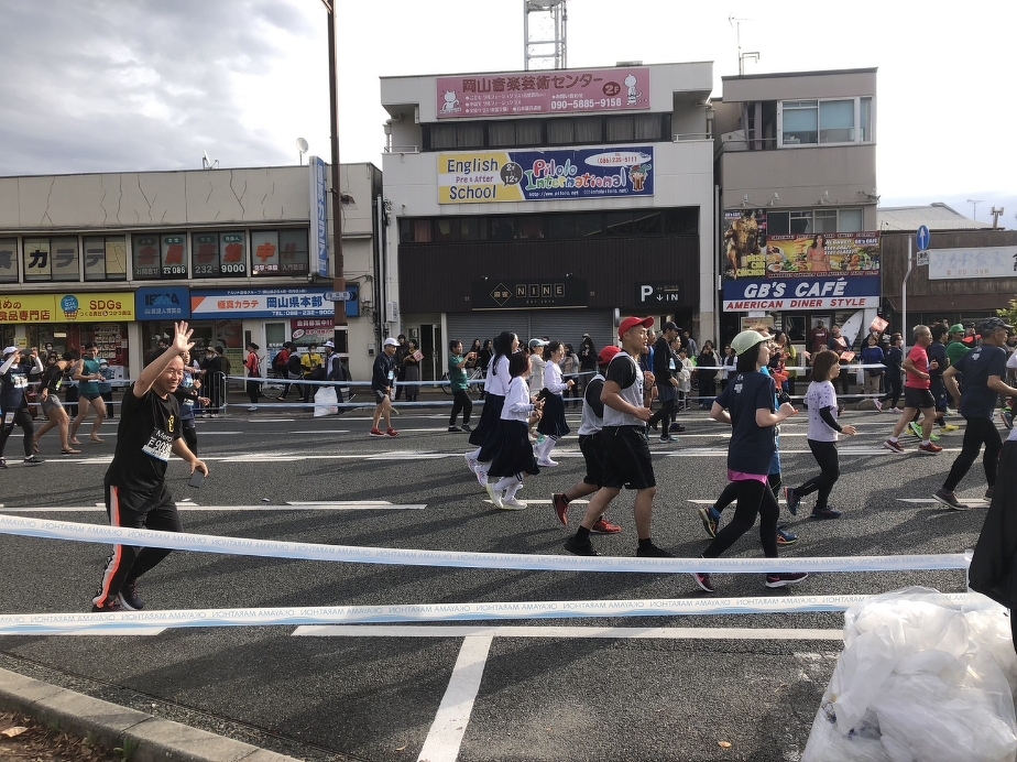 2023年11月12日(日) 活動日記 楽しかった時間に感謝 朝より8年ぶりにおかやまマラソン(ファンラン)出場。16,400人の参加者が一斉にスタートして、我々ファンランチームがスタートするまで約5分。ボランティアや沿道の皆さんの応援、知り合いからの声援、高校生などの演奏などより楽しく最後走れました。楽しかった時間に感謝です。来年も出場したい!! その後、ソフトの練習へ。体験会を企画して2人の子が参加。楽しんでいたし、入部して欲しいです。そのまま調子にのって(?)Aチームと練習をしていると、足にピリピリと痛みが・・・。ツル手前より退散!