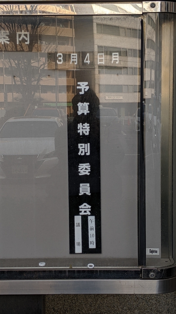 2024年03月04日(月) 活動日記 予算特別委員会 2日目 朝より市役所へ。週末に受けた市民相談を担当課へ。前に進めていかなくてはなりません。 その後、予算特別委員会2日目へ。5人の議員が予算に対し質疑を行い、非常に勉強になりました。 その後、勉強会。金曜日の常任委員会の内容について事前レク。