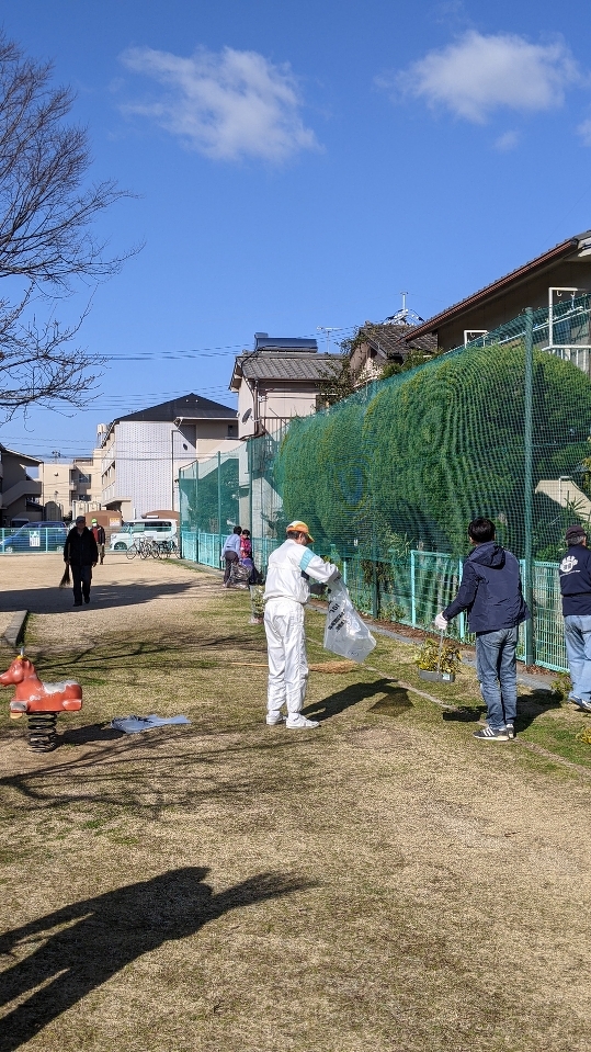 その後、清掃へ。地域の皆さんと公園を清掃。綺麗になりました。