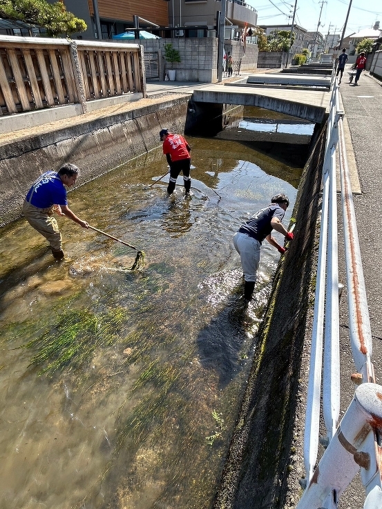 朝より川そうじ。年2回の藻狩りですが、いつもより少なかった。