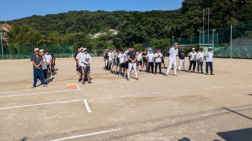 朝より町内対抗ソフトボール大会へ。まずは準備です。まだ7時でしたが、ここから暑かった~