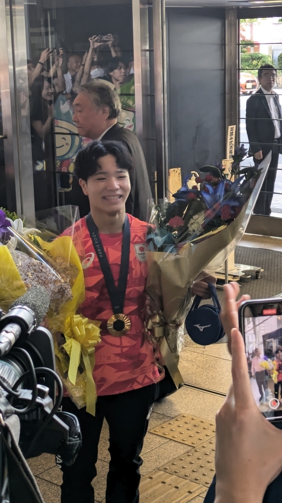 2024年08月27日(火) 活動日記 最終日 朝より早朝練習へ。16日間の最終日、昨年度の卒団生にもらった上下を着て皆勤賞。朝5時40分は辛く、体力低下を感じる日々でしたが、子ども達と楽しく練習ができました。 その後、市民宅を訪問。自民党の党費を頂きながら、いろいろな話を。厳しい意見もありましたが、それは当然のことです。次の国政選挙は本当に厳しそうです。 昼は市役所へ。金メダル3個・銅メダルを獲得した岡慎之助選手が岡山市役所へ来られ、多くの皆さんで盛大に迎えました。 途中、市民相談。開発事業の話ですが、難しそうです。