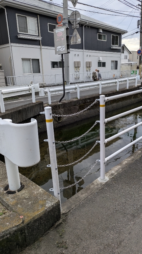 その後、現場確認へ。花壇の世話をして頂いている皆さんより、水やりをする時にガードパイプが邪魔になる、と。この度一部がクサリとなりました。