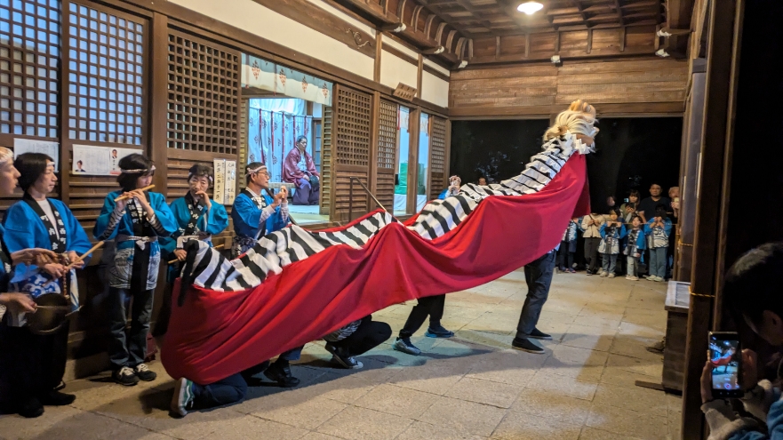 その後、秋祭り。町内会の名物『獅子舞い』を楽しませていただきました。団結が深まります!