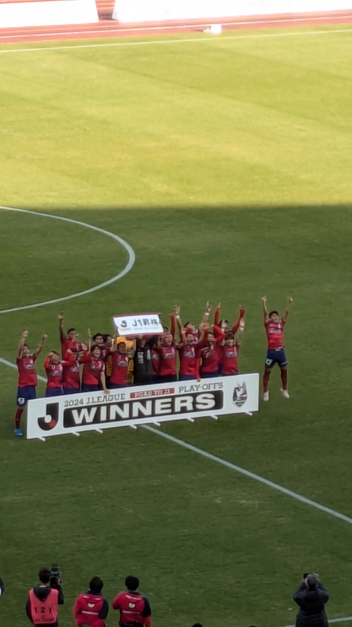 その後、再び決戦の地へ。朝の9時(試合開始4時間前)には既に駐車場は満車。12時ごろ行けば、もうすごい熱気!知り合いに会うと、みんなテンション高め!!14,673人の後押しもあり、ナイスゲームでJ1昇格。