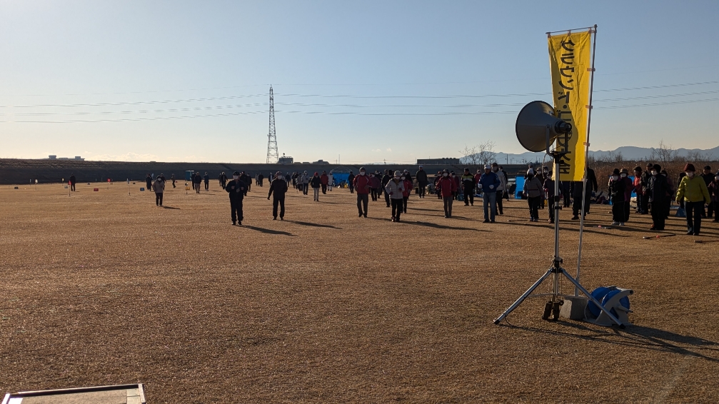 朝よりグラウンドゴルフ大会へ。今年初の会長杯で200人を超える皆さんが初打ち!今年も頑張ってください。