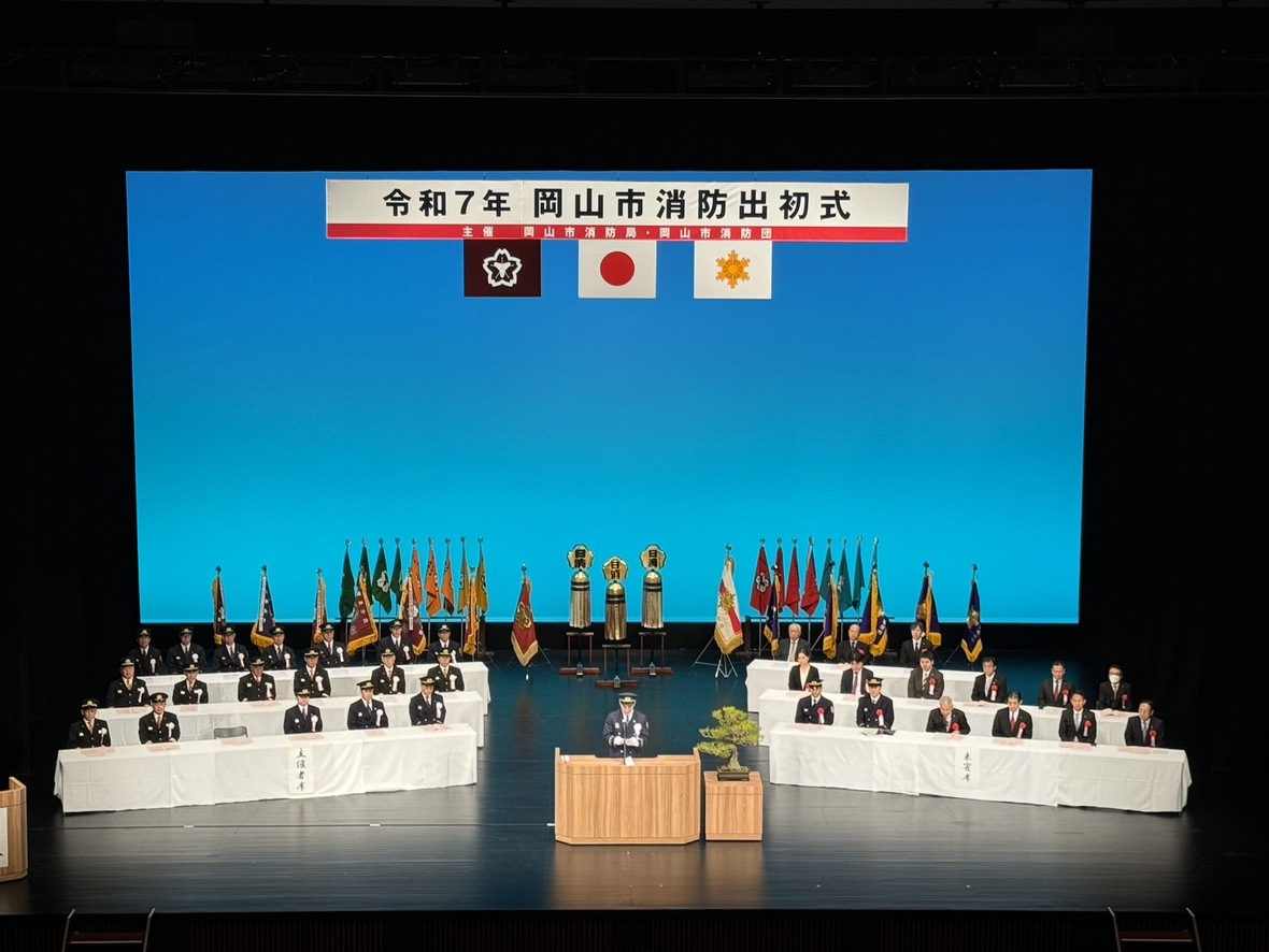 朝より出初式へ。岡山芸術創造劇場(ハレノワ)で初開催。団員さんの日ごろの活動に敬意を表します。受賞された団員の皆さん、おめでとうございます。