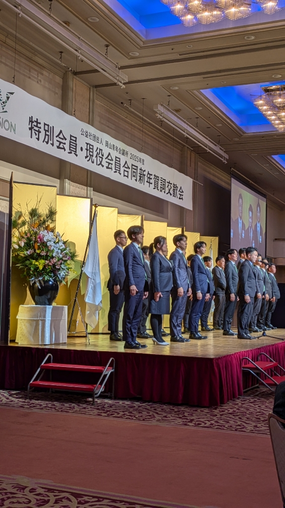 その後、岡山青年会議所新年賀詞交歓会へ。これからの岡山を背負う経済界の皆さんです。一緒に頑張って、岡山を盛り上げたいと思います。