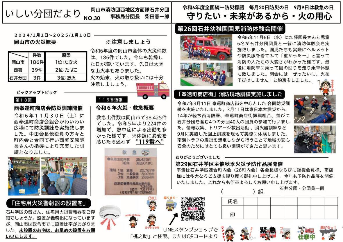 2025年04月05日(土) 活動日記 エンジョイコース 朝よりグラウンドゴルフ大会へ。300人を超える方が参加し楽しそうにプレーをしていました。 その後、消防関係のお便りを頂きました。南区の山林火災もあったことより、日頃の注意が必要です。 その後、小学校の運動場へ。今年度より開始する『エンジョイコース』の初日。多くの子ども達が参加してくれました。 その後、練習試合へ。鹿田スポーツ少年団さんにお越しいただき、相手をしてもらいました。良い経験になりました。
