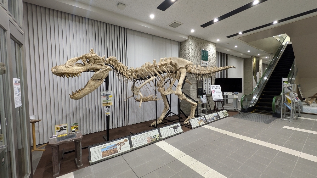 その後、加計学園交流会へ。政財界の皆さんが集まり交流会が開催され、いろいろなお話ができました。また、入口にタルボサウルスの全身骨格標本が・・・。