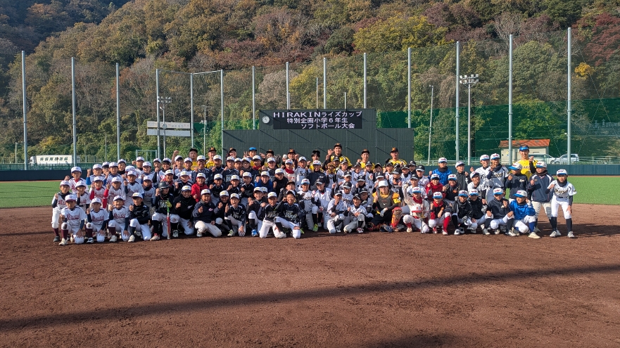 2025年11月24日(月) 活動日記 HIRAKINライズカップ特別企画 早朝より新しいライズ球場へ。約半年間、計画してきたこの大会ですが、超早朝よりナイター照明を付け落ち葉拾いをしてくれた平林金属女子ソフトボール部の皆さん、子ども相手に本気?で勝負をしてくれた男子ソフトボール部の皆さん、献身的に審判をしてくれた審判部の皆さん、大きな声援を送り続けてくれた保護者の皆さんのおかげで、子ども達にとっては最高の1日となりました。関係者の皆さん、ありがとうございました。