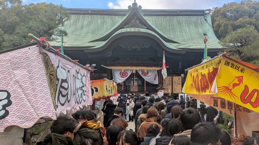 箱根駅伝の黒田朝日選手(岡山市出身)の激走による逆転往路優勝を見て感動し、家族と初詣に!多くの人出でした。
