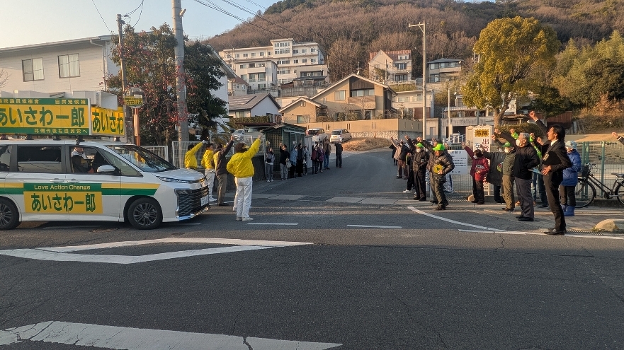 2026年02月06日(金) 活動日記 応援 朝より朝礼へ。山下たかし候補の夫人と参加。皆さんへ現状を説明し、お願いしました。 その後、あいさわ一郎候補の応援へ。多くの方に自民党の政策やあいさわ一郎候補の実績をお伝えしました。 途中、市役所へ。来週の委員会の打ち合わせと、代表質問の原稿の打ち合わせ。 その後、地元であいさわ一郎候補のスポット演説会へ。地元の皆さんへ、しっかり訴えました。