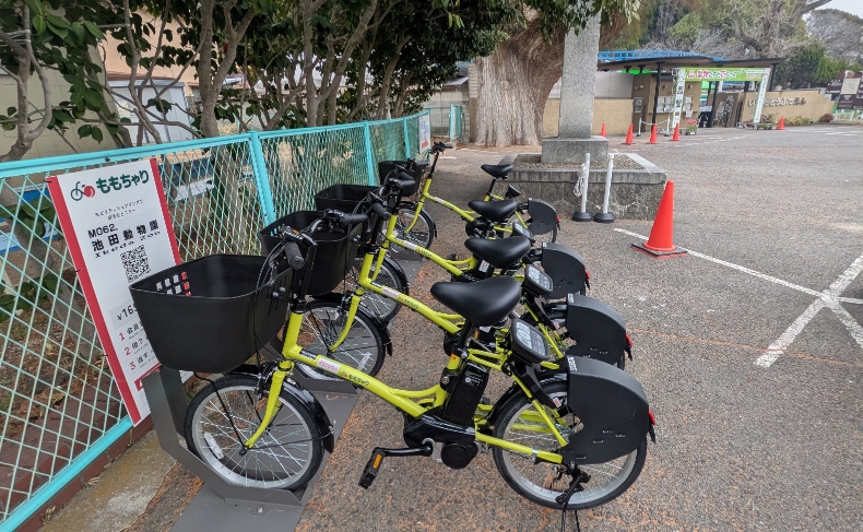 その後、ももちゃりポートへ。今日から71か所のポートで電動式のももちゃりが乗れるようになりました。ぜひ一度乗ってみてください。