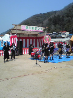 その後、桜まつりに。親しい方からご案内を頂き伺いましたが、残念ですが桜は3分咲き。ただ、高校生の吹奏楽やカラオケ大会など多くの方々が参加されており、盛り上がっていました。